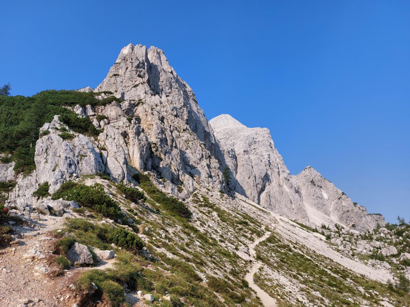 Tour: Parkplatz Vršič-Pass – Vratica Scharte – Klettersteig B/C – Mojstrovka (2335m) und retour