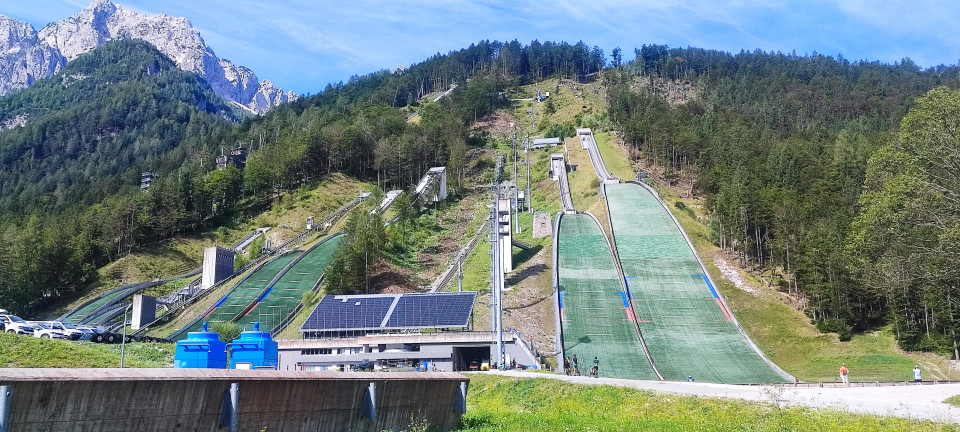 Tour: Zug nach Tarviso Bosco Verde - Radweg auf der alten ehemaligen Kronprinz-Rudolf-Bahn nach Jesenice, mit Abstechern zu den Lago di Fusine und nach Planica - Zug von Jesenice retour nach Villach