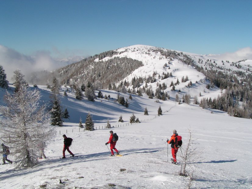 Die Tour findet je nach Schneeverhältnissen mit oder ohne Schneeschuhe statt. Bitte auf Gamaschen und Schiteller an den Wanderstöcken nicht vergessen. Wenn vorhanden, bitte eine Lawinenausrüstung (LVS-Gerät, Schaufel, Sonde) mitnehmen.